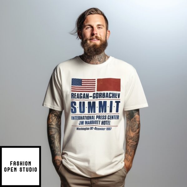 Reagan Gorbachev Summit International Press Center Jw Marriott Hotel 1987 Usa Flag T-Shirt