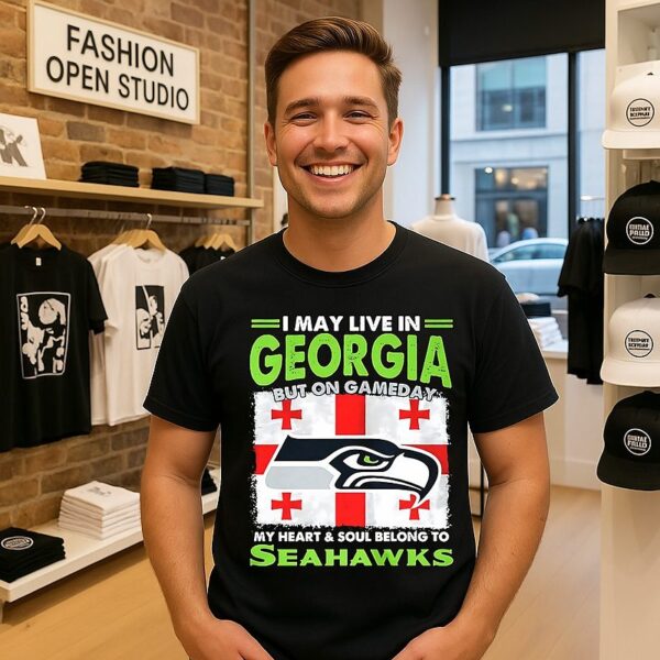Seattle Seahawks I May Live In Georgia But On Gameday My Heart And Soul Belong To Seahawks T-Shirt has gone viral on the Internet. Discover the t-shirt below!