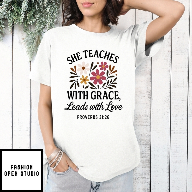 Be the first to review “She Teaches With Grace Leads With Love T-Shirt” Cancel reply