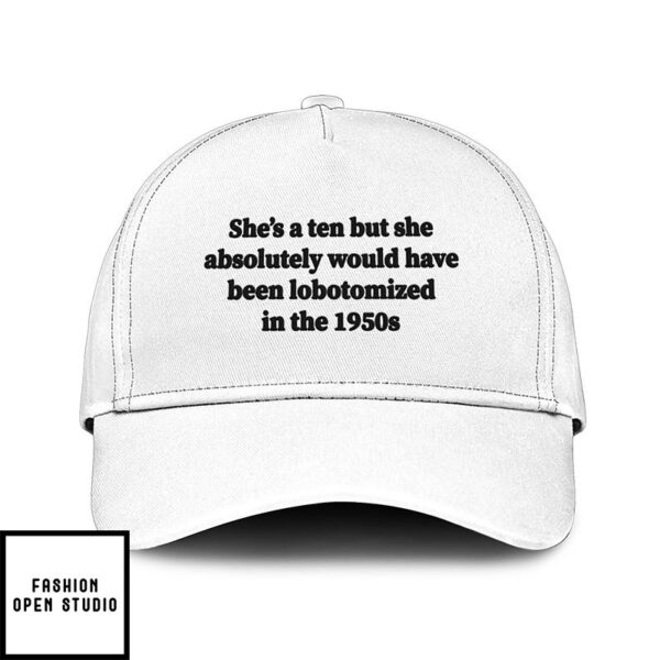 Looking for a stylish, on-trend hat to elevate your look? The She’s A 10 But She Absolutely Would Have Been Lobotomized In The 1950s Hat is just what you need! Find your perfect match in our hat collection!