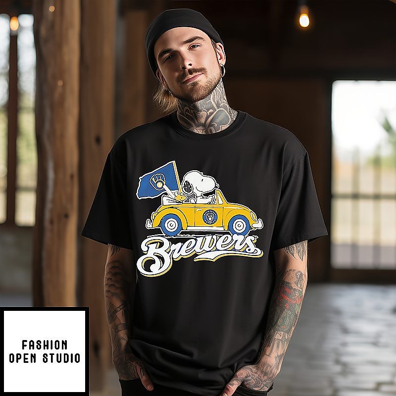 Snoopy And Woodstock Driving Car Milwaukee Brewers T-Shirt