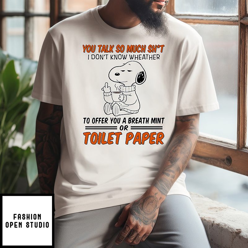 Snoopy You Talk So Much Sht I Don’t Know Wheather To Offer You A Breath Mint Or Toilet Paper T-Shirt