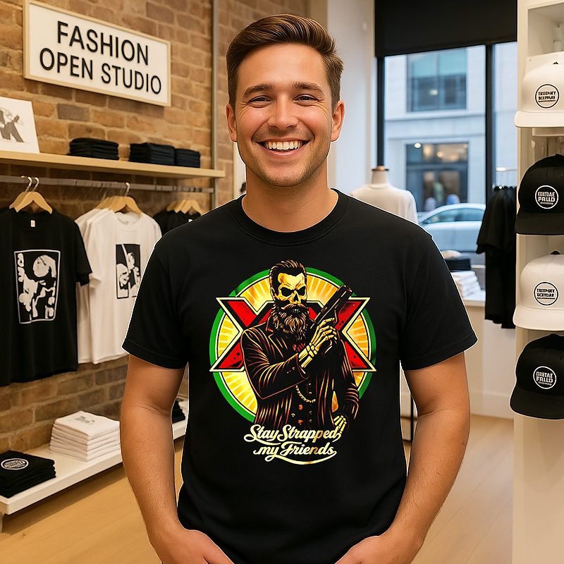 Be the first to review “Stay Strapped My Friends Skeleton Graphic T-Shirt” Cancel reply