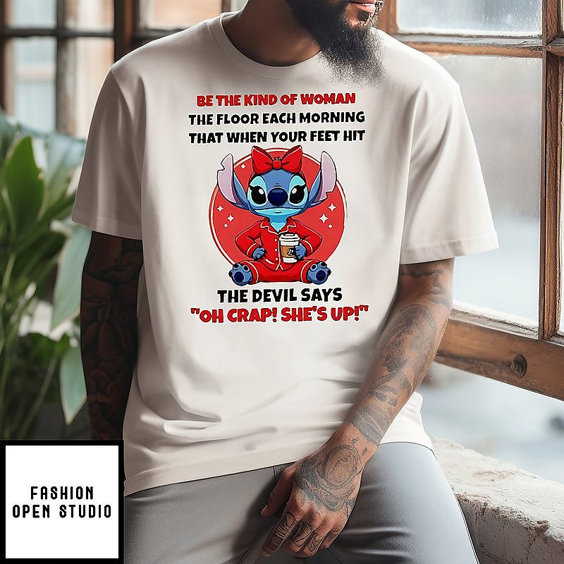 Stitch Be The Kind Of Woman The Floor Each Morning That When Your Feet Hit The Devil T-Shirt has gone viral on the Internet. Discover the t-shirt below!
