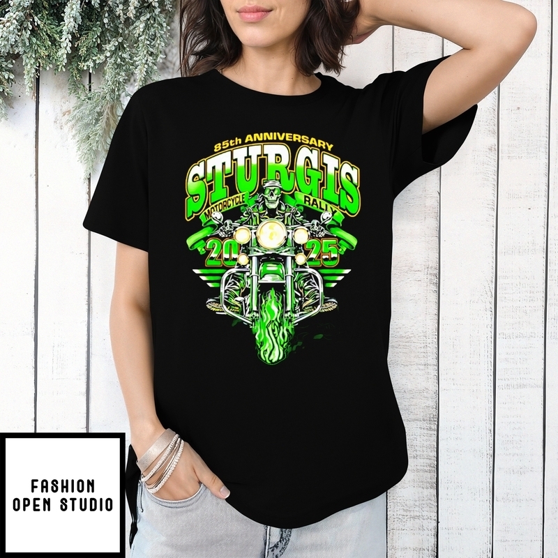 Sturgis Motorcycle Rally Green Skeleton Rider 85Th Anniversary 2025 T-Shirt