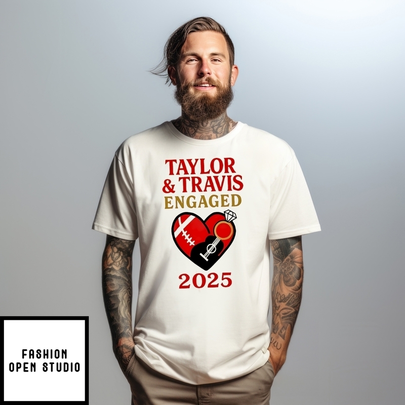 Taylor And Travis Kelce Engagement 2025 Heart T-Shirt
