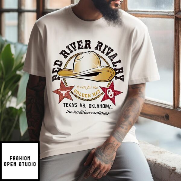 Texas Longhorns Vs Oklahoma Sooners Red River Rivalry Golden Hat Match Up T-Shirt