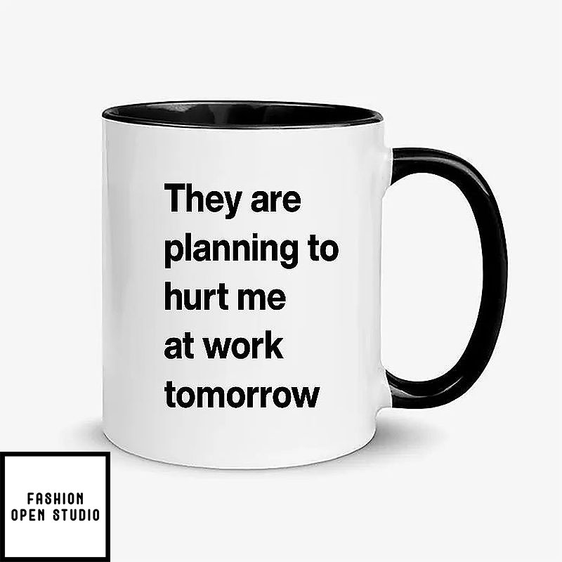Looking for a mug to enjoy your favorite hot beverages? Look no further! Check out this They Are Planning To Hurt Me At Work Tomorrow Mug!