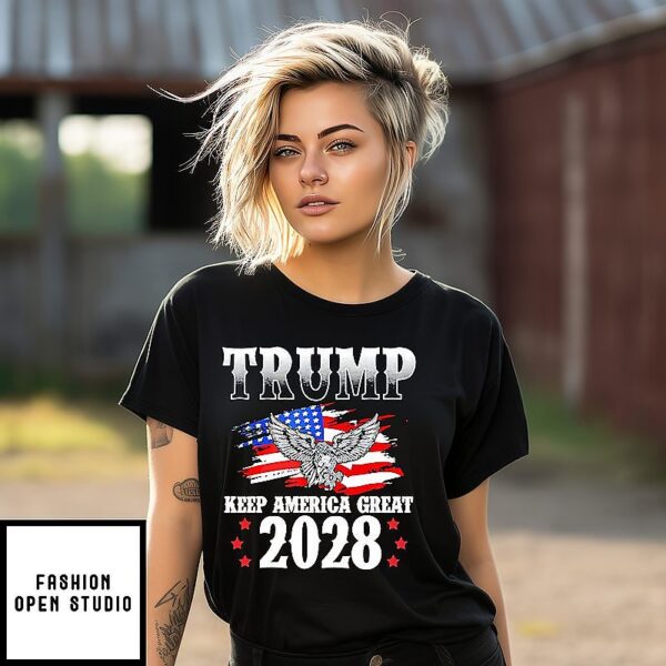 Be the first to review “Trump Keep America Great 2028 USA Flag T-Shirt” Cancel reply