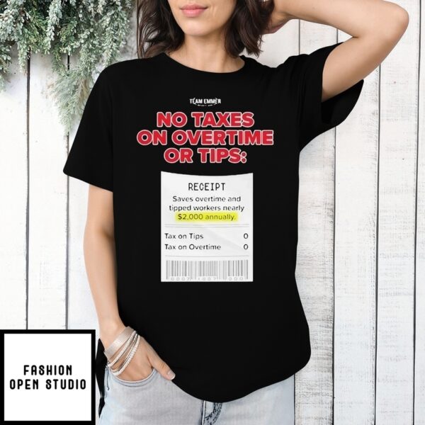 Trump No Taxes On Overtime Or Tips Receipt Saves Overtime And Tipped Workers Nearly Team Emmer T-Shirt has gone viral on the Internet. Discover the t-shirt below!