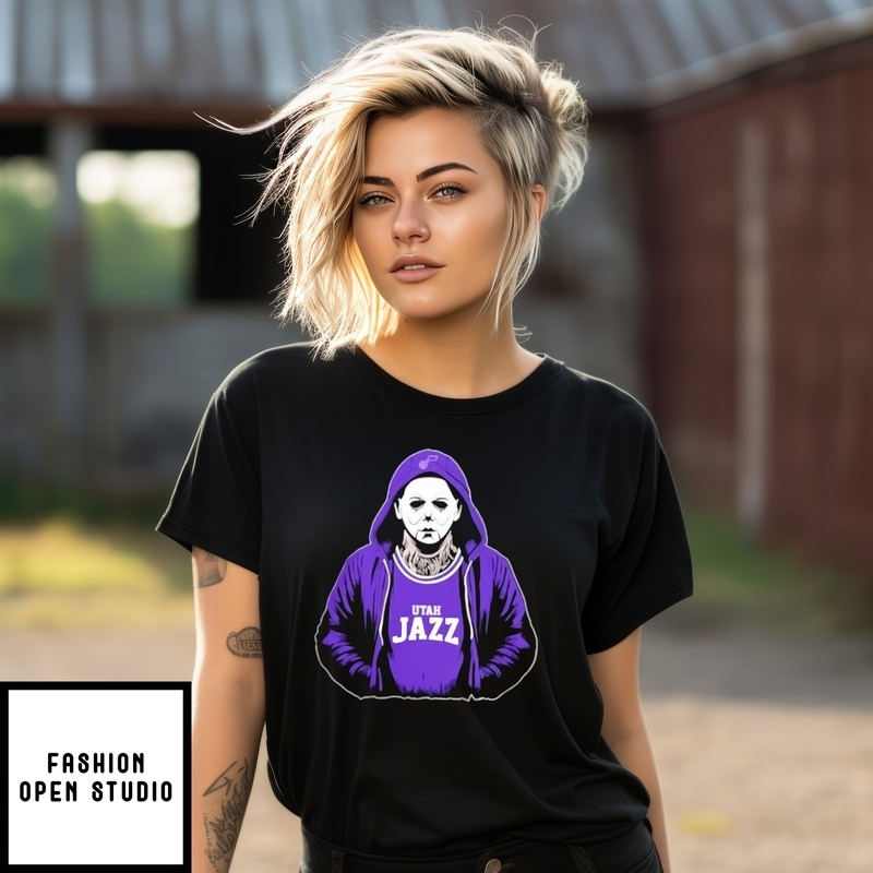 Utah Jazz Nba Michael Myers Scary Halloween Mashup T-Shirt