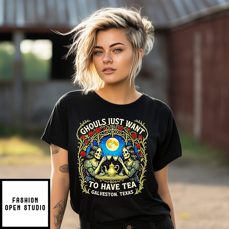 Be the first to review “Victorian Ghostly Skeleton Ladies Drinking Tea Halloween T-Shirt” Cancel reply