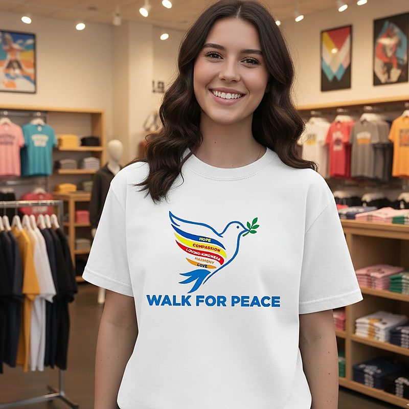 Walk For Peace Dove With Olive Branch Message T-Shirt