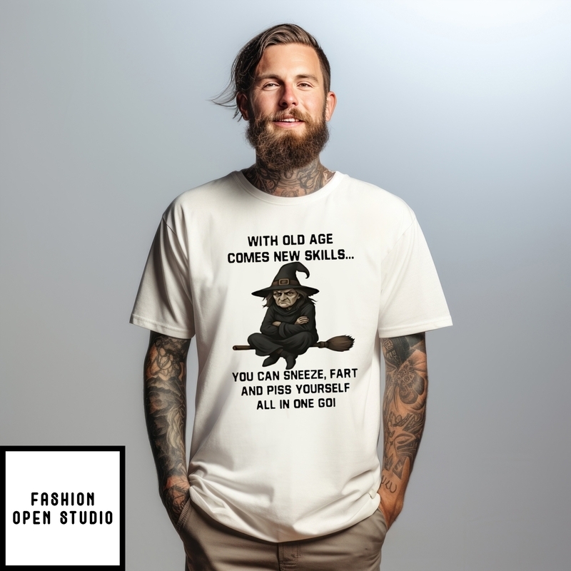 Witch With Old Age Comes New Skills You Can Sneeze Fart And Piss Yourself All In One Go T-Shirt has gone viral on the Internet. Discover the t-shirt below!