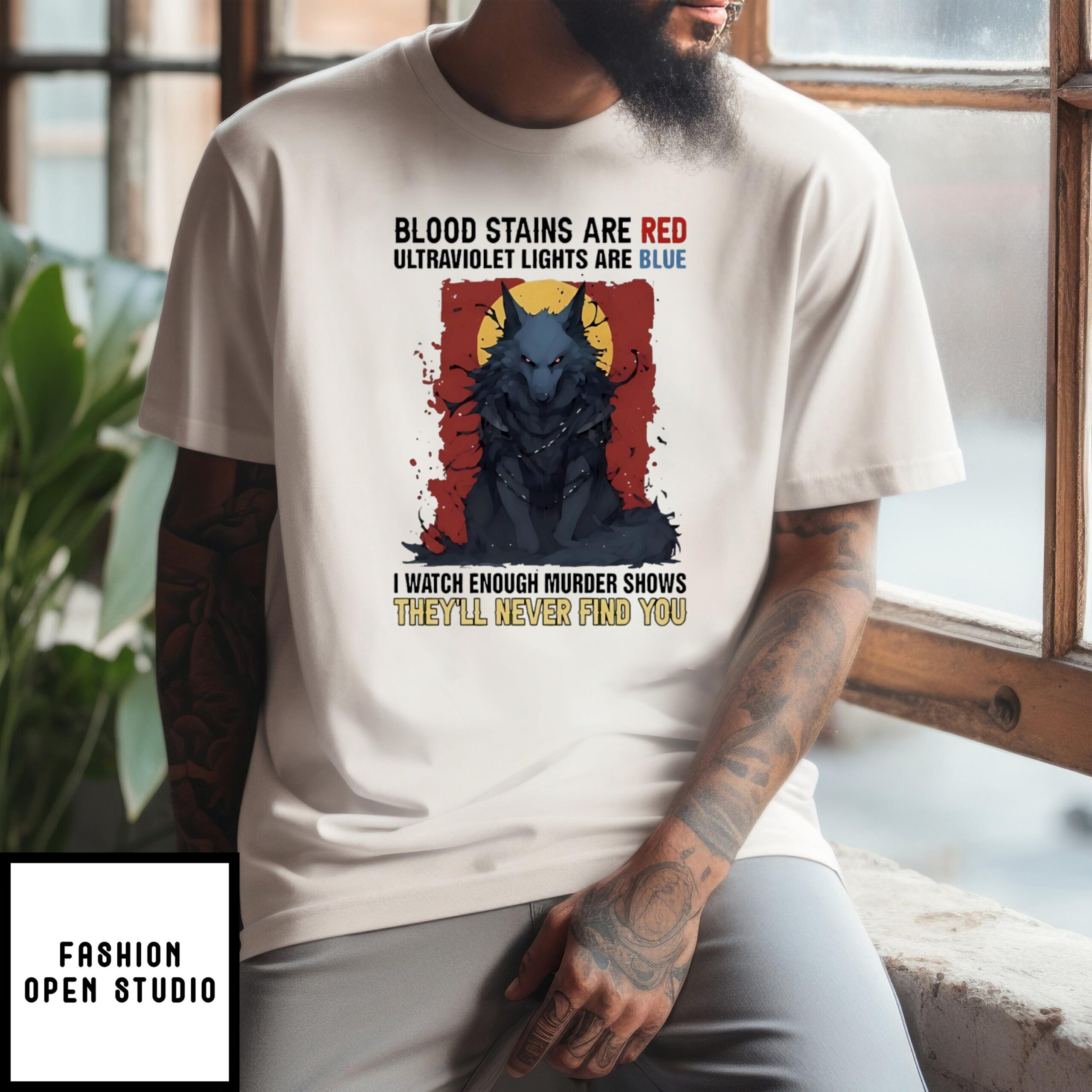 Wolf Blood Stains Are Red Ultraviolet Lights Are Blue I Watch Enough Murder Shows They’Ll Never Find You T-Shirt