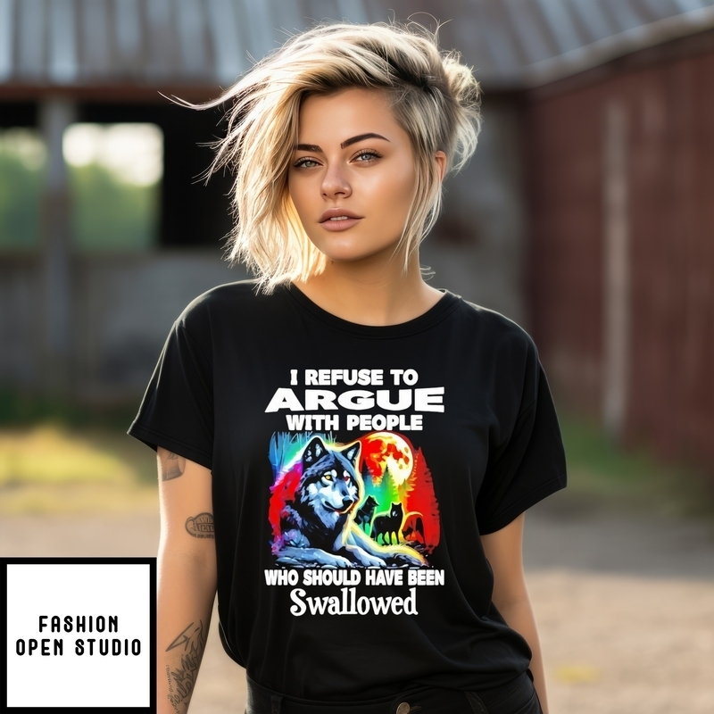 Wolf I Refuse To Argue With People Who Should Have Been Swallowed T-Shirt