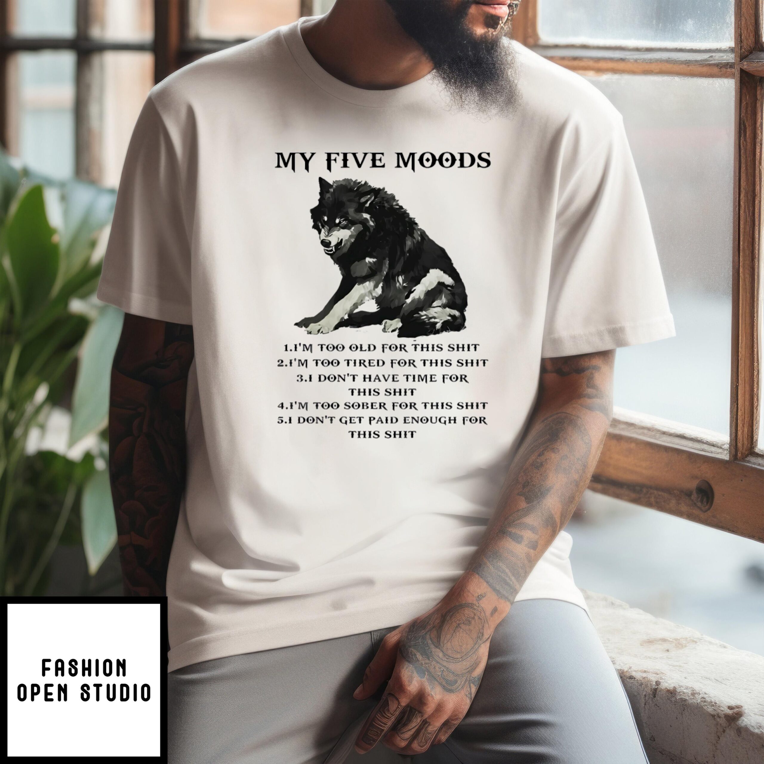 Wolf My Five Moods I’M Too Old For This Shit T-Shirt