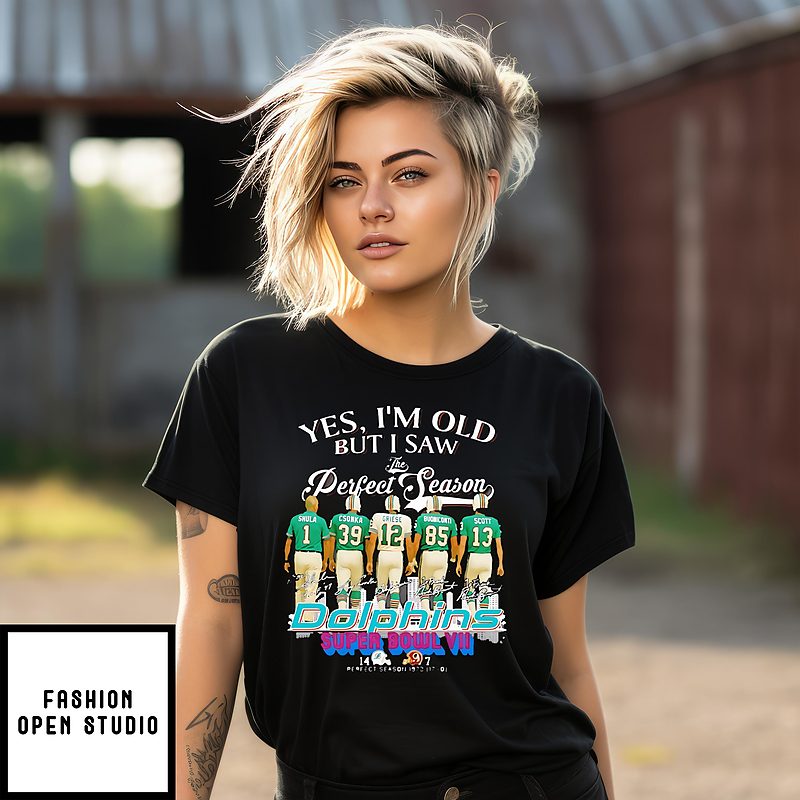 Yes I’m Old But I Saw The Perfect Season Miami Dolphins Super Bowl Vii Signatures T-Shirt