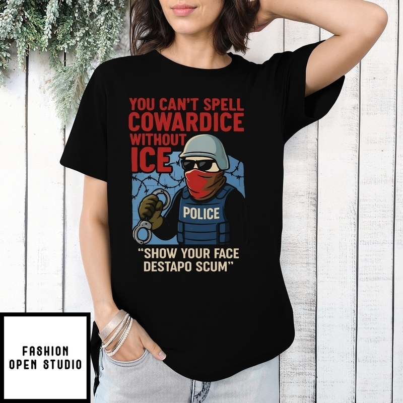 You Can’T Spell Cowardice Without Ice Show Your Face Destapo Scum T-Shirt