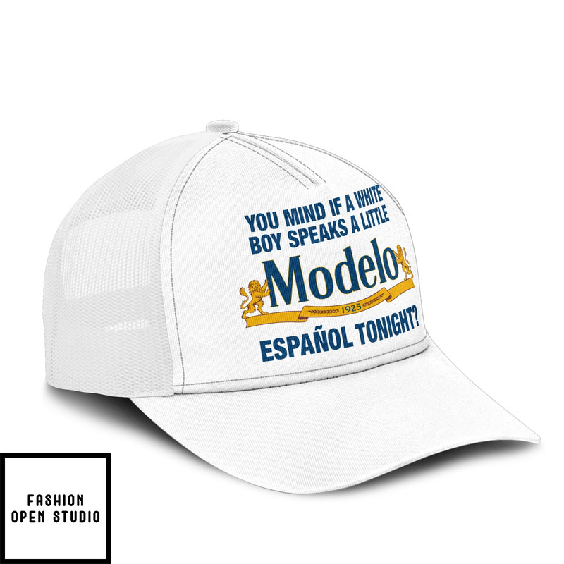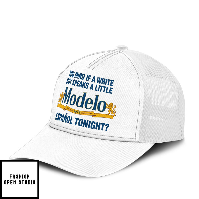 You Mind If A White Boy Speaks A Little Cerveza Modelo Espanol Tonight Trucker Cap